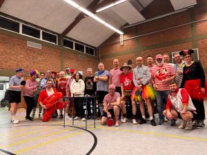 - Karnevals Ping-Pong 2024Eine Woche, bevor der Straßenkarneval startet, war es wieder soweit. Nicht die Punkte im Doppel oder Einzel spielten die Hauptrolle, dafür aber die Ringel auf dem Hemd. Kostümiert und mit musikalischer Untermalung, wurde der Riesen-Rundlauf um 4 Platten gespielt. Natürlich gab es GewinnerInnen, doch wirklich wichtig war das nicht. Neben dem Training im Riesenrundlauf und der Möglichkeit, sich natürlich auch an der normalen Platte zu duellieren, war es während des Trainings durchweg möglich, sich am Buffet zu stärken – von Käse über Mettbrötchen bis zu Matjes war alles dabei; und natürlich darf ein kühles Kölsch nicht fehlen, damit der Flüssigkeitshaushalt… Karnevals Ping-Pong 2024 weiterlesen